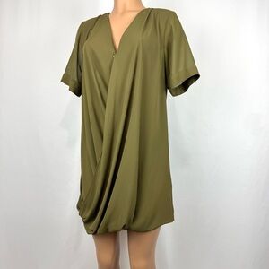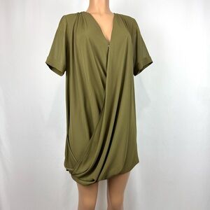 Topshop Women’s Sz 4 Olive Green Wrap Drape Front Tunic Mini Dress V-Neck Boho