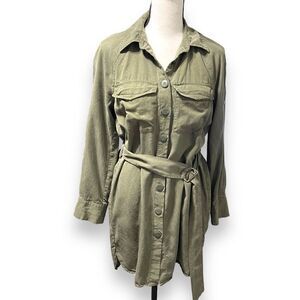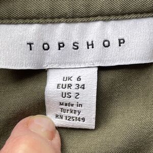 Topshop Women's Utility Shirt Button-Up Mini Dress Olive Green Size 2
