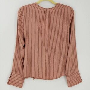 Topshop Wrap Tie Front Deep V-Neck Silky Pin Stripe Blouse Pink Black Size 10