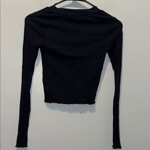 Topshop XS Black Long Sleeve Button-Up Cropped Top