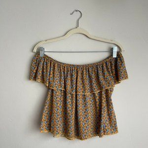 Topshop / Yellow & Blue Paisley Print Off The Shoulder Top