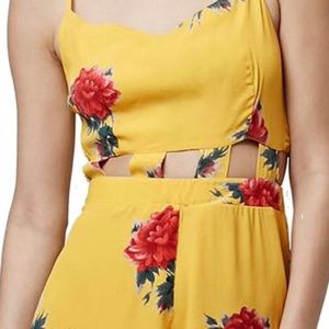 Topshop Yellow Floral Romper Cut Out