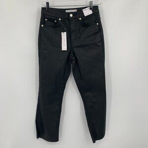 Topshop black coated straight jeans raw hem cropped high rise denim new 26