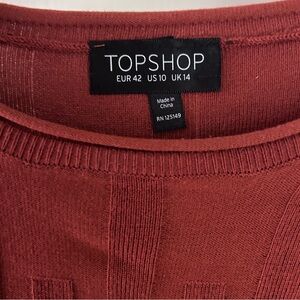 Topshop crew neck sweater pullover Rust Ribbed Knit Beaded Sleeves US 10 Slim