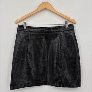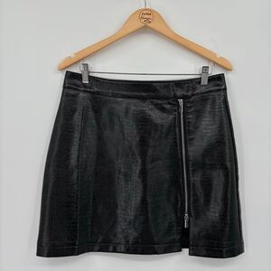Topshop croc effect faux leather zip mini skirt in black, Size 10, Modern Grunge