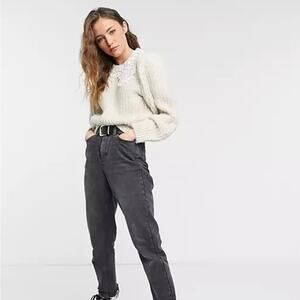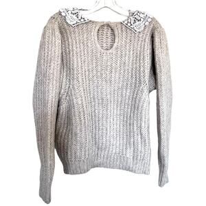 Topshop chunky knit ribbed sweater with exaggerated crochet collar. Ecru. Excellent condition. Size XL