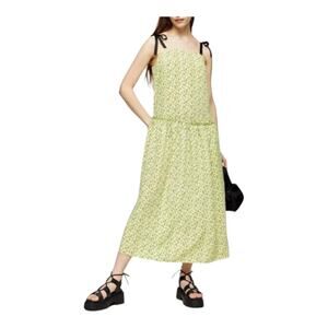 Topshop dress dropped waist midi sleeveless green size 4 D0305