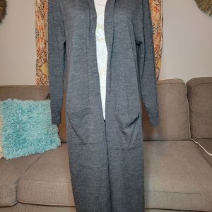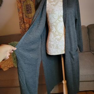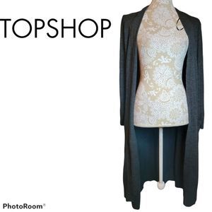 Topshop duster open front long sleeve cardigan charcoal gray featuring two pockets