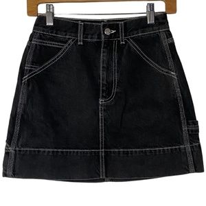 Topshop carpenter skirt in washed black With white contrast stitching. 5 pocket design, button and zipper closure, high rise .