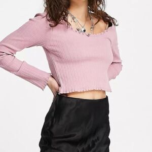 Topshop frill edge ribbed pointelle top in pink mauve Sz 4-6 NWT IN PACKAGING