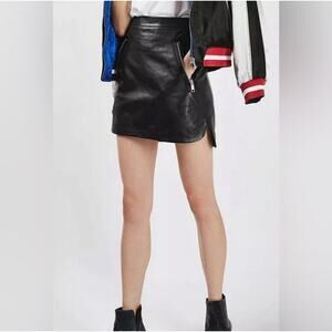 Topshop genuine leather black mini skirt moto boho US size 8
