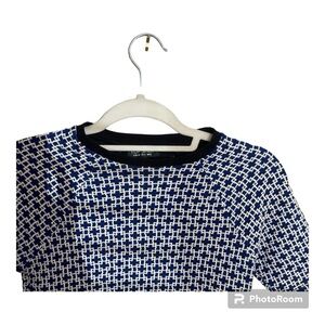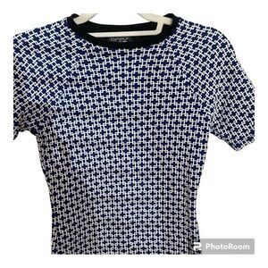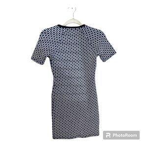 Topshop geometric bodycon stretchy mini dress size 2 EUC. white blue and black.