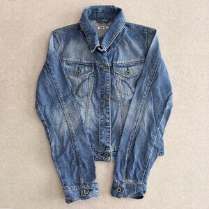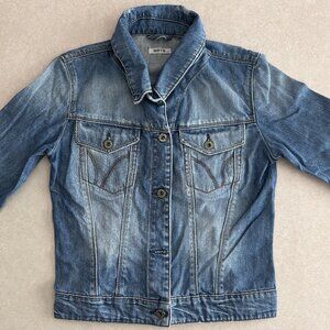 Jacket is pre-owned, so please check photos for condition. This one looks to have been well-worn, so showing some signs of age and wear. May be some minor marking and fading, and there's a button missing second from the bottom. Thankfully jean jackets hold up pretty well.