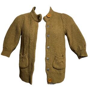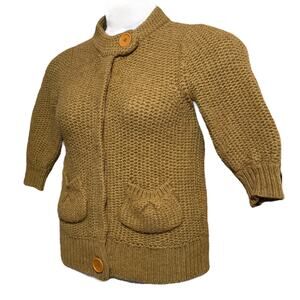 Topshop mustard alpaca blend short sleeve chunky cardigan with snap front Size 8