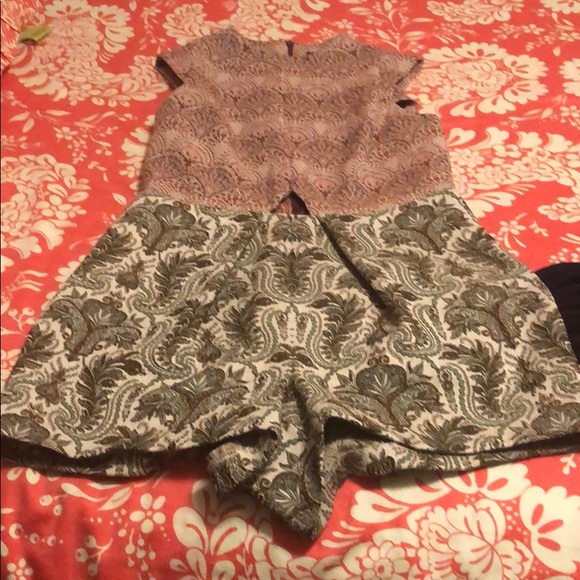 Chic two toned pattern romper with small triangle cutout in the midsection. Comes up to your neck - great condition worn once