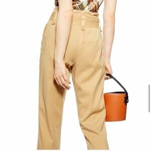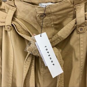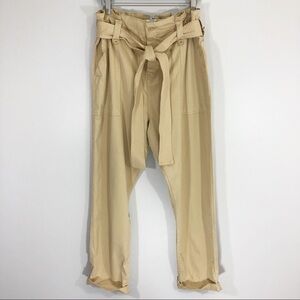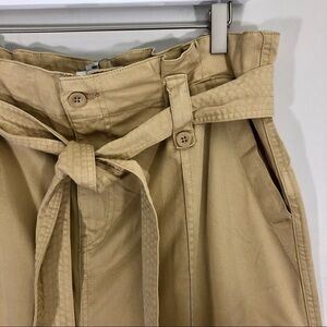 The chic paperbag waist khaki pants are a trendy update to the boring old khakis. These stretch khakis are styled with handy pockets and cropped hems. High rise.