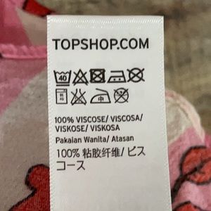 TopShop crop top. Size 10. White and pink with red floral pattern. Ruffle straps. Super cute! Excellent condition.