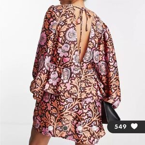 Topshop satin sleeve detail mini dress in floral print 4 NWT and in packaging