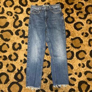 Topshop straight blue jeans womens size 26 waist 24 length cut frayed