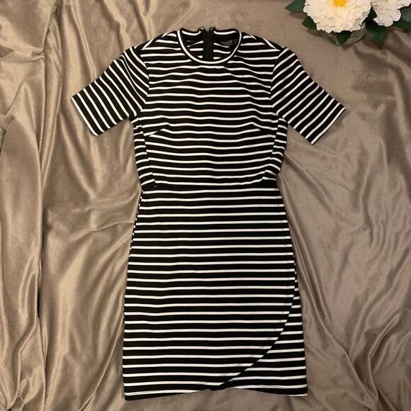 Topshop striped faux wrap dress in black and white with half sleeves. This is in excellent condition
