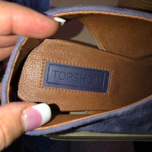 Very cute, like new Topshop sandal, block heel color is periwinkle / purple - for reference, I wear a 7 1/2 and these fit me perfectly