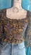 This fun, floral, yellow and black Topshop crop top has three-quarter puffy sleeves, gatherings in two parts on the sleeves and at the waist.