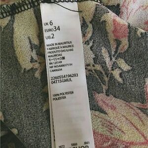 Topshop top black multicolor floral scalloped hem and sleeves women's size 2