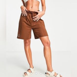 Topshop tricot longline shorts with logo branding in chocolate Women's Small