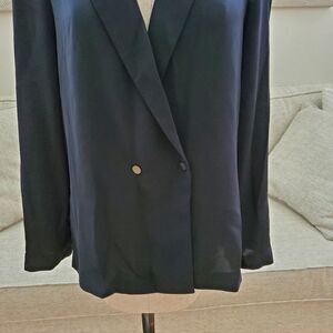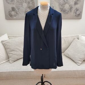 Add feminine charm to a classic menswear staple in this slouchy overlay styled with chic welt pockets and airy split sides.