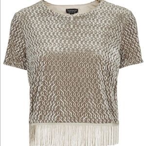 Topshop Embossed Velvet Fringe Tee US size 2 Pit to pit 17” *Bundle and save 20% off 3 or more items