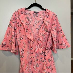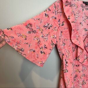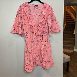 Topshop Floral Wrap Dress 8 Flutter Sleeve