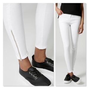 MOTO high-waisted jeans in white with zip ankle detail and authentic trims.