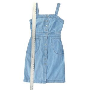Super cute pre-owned Topshop Moto Denim Jean Dress Size 6. Light wash. Snap front, opens up the entire way down the front. Square Neck. Two side pockets. 100% cotton, has no stretch. Runs true to size. No stains or holes. Please ask all questions before purchasing.