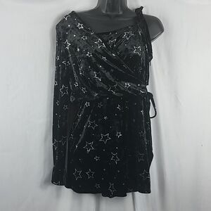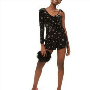 Topshop Star Velvet Asymmetrical Sleeve Romper 8 Black Silver Metallic Punk Sexy