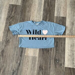 Topshop Wild Heart Cropped T-shirt Blue Size Small Short sleeve