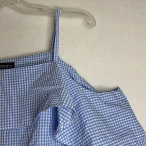 Topshop blue gingham plaid cold shoulder blouse top shirt size 6