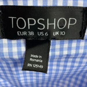 Topshop blue gingham plaid cold shoulder blouse top shirt size 6