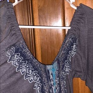 Super cute tunic, looks cute with leggings. No flaws and only worn once. Clean and from a smoke free home. Juniors size top.
