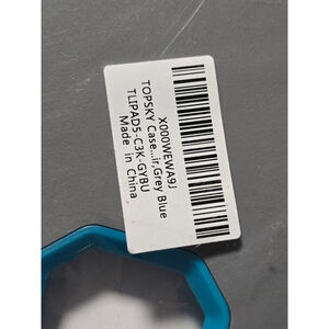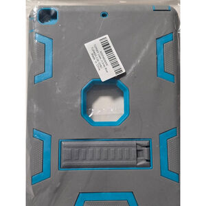New with tags and in box. TOPSKY TLIPAD5-C3K-GYBU iPad case, model X000WEWA9J, grey and blue. Hard plastic construction. Features a built-in stand. Approximate dimensions are 7.5" x 9.5". No visible damage or imperfections. Made in China.