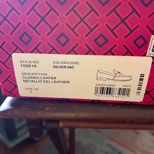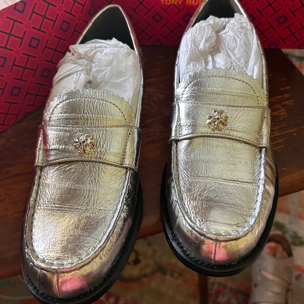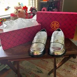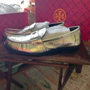 Tori Burch NIB size 7 Silver loafers