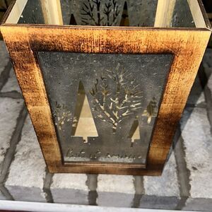 Torched Wood Tin Metal Combo Winter Holiday Gift Box Candle Light Holder