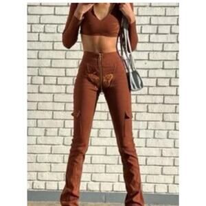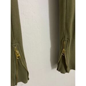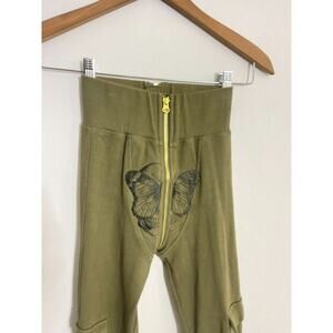 Tordrobes XS Flare Pants Butterfly Embroidered Ribbed Uzip Cargo Olive Green