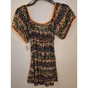 Torero Printed Lightweight Flutter Sleeve Sheer Mixed Print Top Sz S NWT