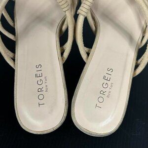 Torgeis New York Sz 7.5 3" Heeled "Suede" Tan Sandals Strappy Women's MEDINILLA
