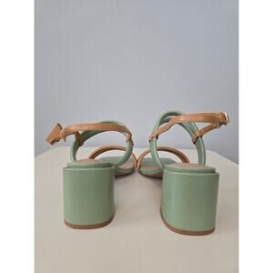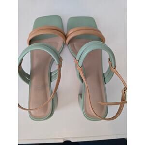 Torgeis New York Palm Heels Strappy Green & Tan Block Sandal Size 11 Preppy