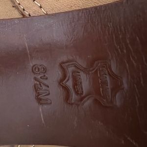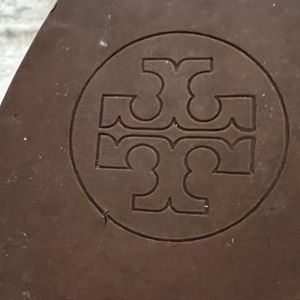 Tan Tori Burch booties with a 3 1/2” stiletto wooden heel, 8 1/2 M. As with other items of this brand they do run about 1/2 size small.