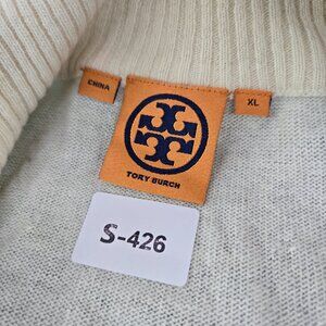 Tori Burch Women Sweater XL Cream Merino Wool Cashmere 1/2 Zip Pullover READ