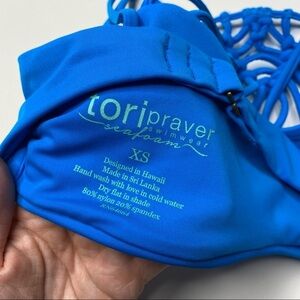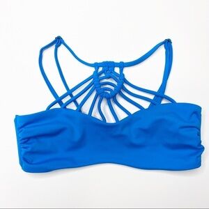 Tori Praver Blue Strappy High Neck Bandeau Bikini Top XS