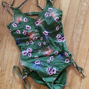 Tori Praver Cheeky Seafoam Green Birds of Paradise One Piece Swimsuit M NWOT