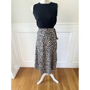 Tori Praver Leopard Print Tie Wrap Midi Skirt S